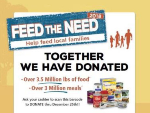 Safeway: Through the end of the year, you can nourish a family while shopping at Safeway. Just rip off a ticket to make a donation of $1, $5, or $10. Hand it to your cashier at checkout. All donations will be rolled up to a $10 bag of non-perishable food for local families.