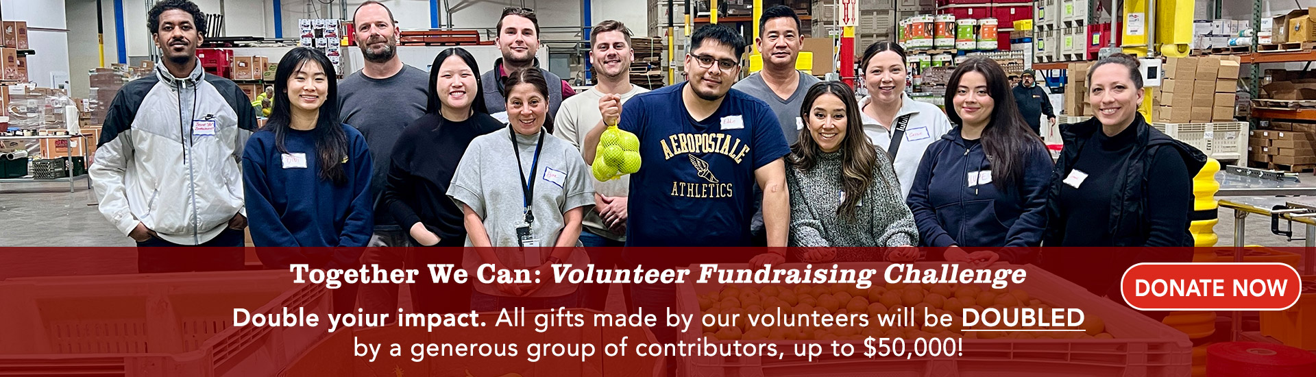 Volunteers comfortable with heavy lifting are needed to help our agency partners load their vehicles at our warehouse
